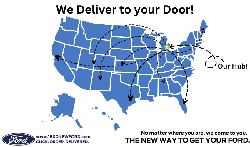 We are committed to delivering a tailored, straightforward experience for each customer. We will walk you through the process and explain everything in a simple and easy to understand way. Once you've chosen your new Ford, we will guide you though financing, warranties and more. We'll provide you with trade-in information (if needed) and arranging car delivery straight to your doorstep - anywhere in the USA.